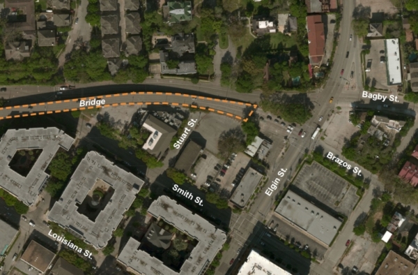 On hold since December, the reconstruction of the Brazos Street bridge on Spur 527 has presented an opportunity to Houston officials to rethink the area as a pedestrian-friendly green space.
